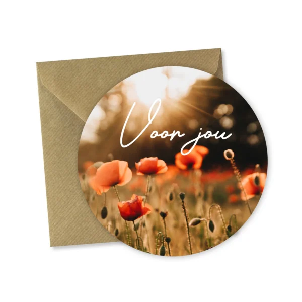 Ronde ansichtkaart met de tekst  “Voor jou”.